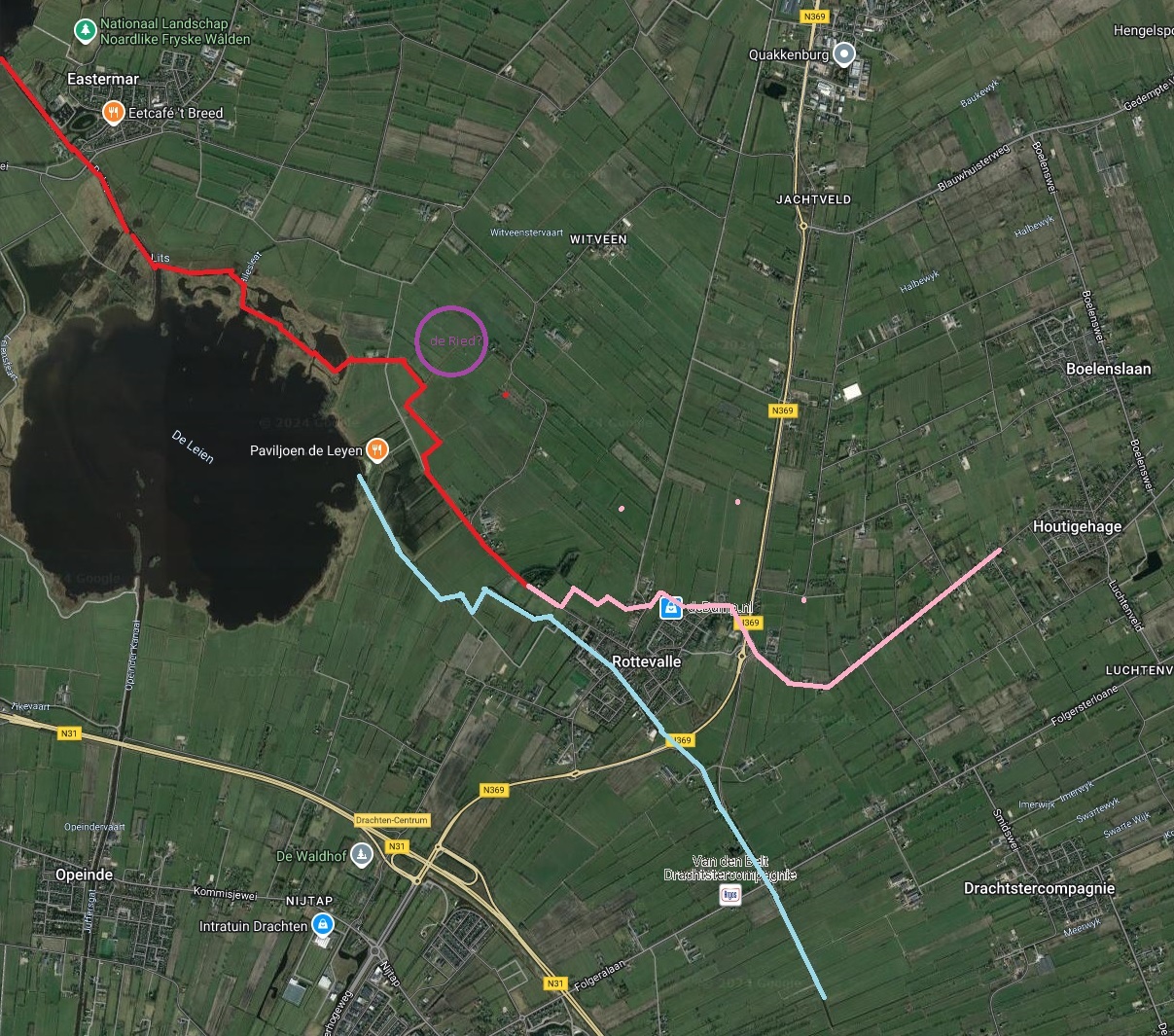 Op hisgis kun je nog zien dat er nog 1 bunder weiland is dat de naam "de Oude Litz" heeft. De rode lijn geeft die loop ongeveer aan. De roze lijn geeft aan hoe ik vermoed dat de oude Lits heeft doorgelopen naar de Houtigehaagsterwei. Jan Post geeft aan dat deze weg de vroegere loop van de Oude Lits was. Door iets wat inversie wordt genoemd worden riviertjes na verloop van tijd wegen. Dit gebeurt als de omringende landen met veen inklinken, waardoor de rivier op een gegeven moment hoger komt te liggen. Als je dus een konkelig weggetje tegenkomt kan het dus best zijn dat dit een riviertje was. Naast de Lits en de oude lits, was er in deze buurt nog een (klein) riviertje, de Ried genaamd. Deze heb ik nog niet precies gelokaliseerd maar ik vermoed dat de (gegraven) Witveenstervaart gebruik maakte van een deel ervan. In aktes wordt de Ried en de Lits genoemd waar ze vlakbij elkaar liggen. In Achtkarspelen is bekend dat daar een Ried daar liep, en in Tietjerksteradeel is een "Holle Ried". Wellicht was onze Ried een aftakking van de Ried uit Achtkasrpelen. |